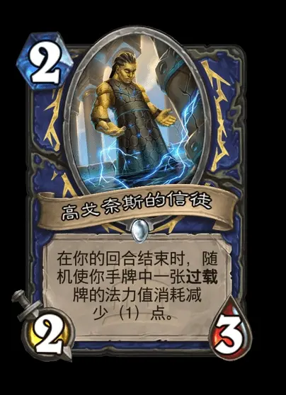 2费2/3 在你的回合结束时,随机使你手牌中一张过载牌的法力值消耗减少(1)点。