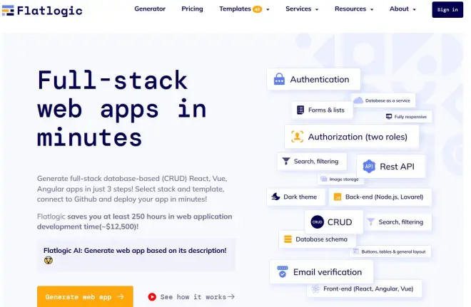 Flatlogic提供了一种独特的集成,它利用 OpenAI 的自然语言处理能力,根据用户的应用程序描述生成数据库模式。然后, Flatlogic Full-Stack Web Generator根据提供的英文应用程序描述,在几分钟内创建一个功能齐全的网络应用程序。应用自动托管在云端,推送到 GitHub,随时可用。