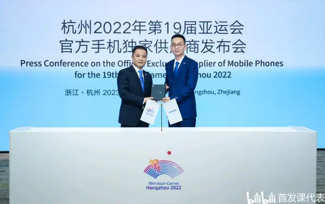 6 月 15 日消息,杭州 2022 年第 19 届亚运会官方手机独家供应商签约赠机仪式在杭州举行,vivo 品牌副总裁兼品牌与产品战略总经理贾净东出席,并在签约仪式上首次公布 vivo X90s 真机。