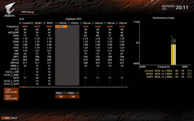 当然,以上都是小白级的简单超频,如果你是高手,非常的专业,那可以在内存的SPD里进行详细的时序设置。进一步挖掘内存条的潜力。设定好SPD值后可以保存预设,方便下次恢复BIOS后再直接读取,省得重新测试设置。