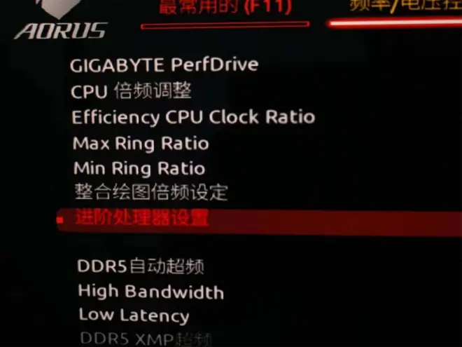 别忘了,还有个黑科技没开。技嘉B760M主板新版BIOS增加了高带宽和低延迟的功能。这两个功能是免费的性能提升,不用废话,开启它吧。