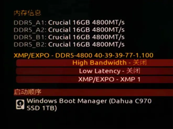当然,B760M主要的提升还是在于这个内存条的超频黑科技。我这条内存的DDR5默认工作频率4800Mhz,相对DDR4来说提升是巨大,但它还是有更大的提升空间的。