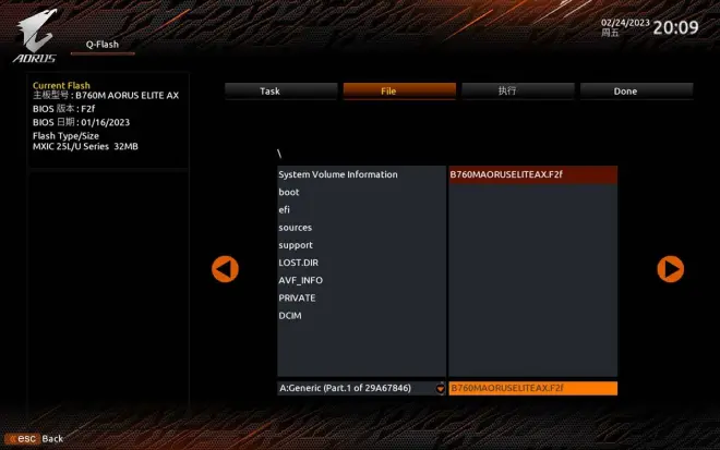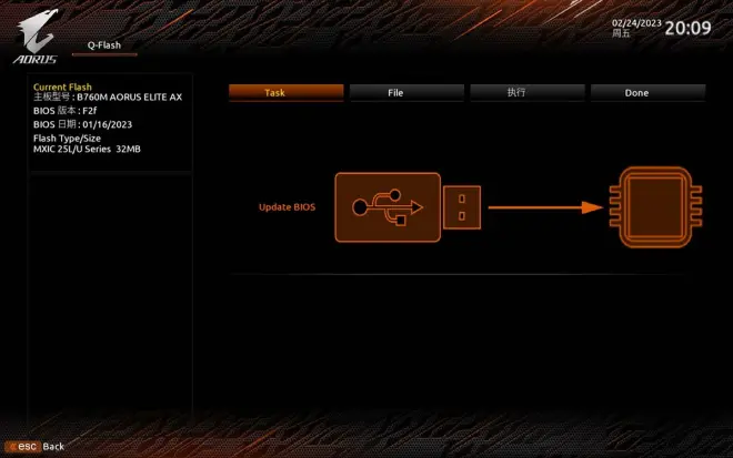 升级BIOS很简单,按F8可以进入更新BIOS的界面。事先去官网下载最新的BIOS,注意找对主板的型号,要一字不差的型号。然后把对应的主板BIOS文件放到电脑硬盘的根目录下,或者是U盘上。要注意文件格式,太大的U盘或是固态硬盘BIOS可能无法读取BIOS文件,导致更新系失败。