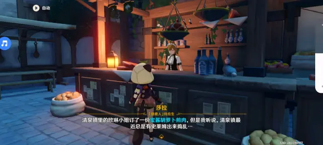 为猎鹿人的莎拉送餐:内容很简单,清泉镇的欧林小姐订了一份蜜酱胡萝卜煎肉,但是路上有史莱姆,需要一位强大又可靠的旅行者护送。 在莎拉将菜交给我们时,打开背包,在任务道具中直接使用蜜酱胡萝卜煎肉!不仅会获得一个成就,还能得到蜜酱胡萝卜煎肉!的食物效果。