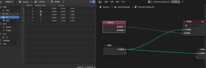 提取边的两个顶点的编号和位置,看到数值乱中带点规律可能会产生误解,但是左边列表的值全是边一端顶点的编号,要组合的话还要和顶点编号2的值进行组合。边到面组