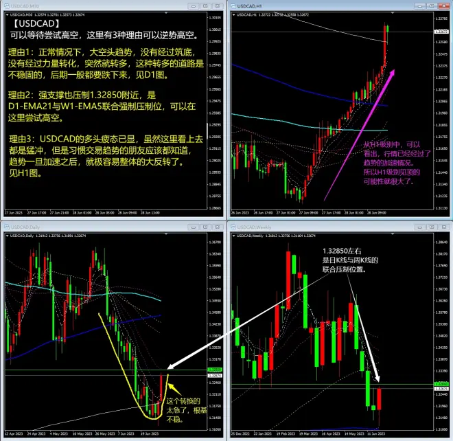 在向下碰触到1900之前,行情率先回到了H4-EMA5的压制位置,则继续尝试高空。