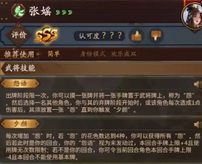 张媱,张嫙的妹妹,这里要多说一些她的事,因为阴间姐姐张嫙的原因导致她也一起被称为“星怒”了,张媱可是在全家被杀之后哭瞎,而且被孙皓羞辱后问及“汝父何在”时,明明听出来对方是孙皓后厉声骂道“被奸人所杀”才被乱棍打死,以“星怒妹妹”去称呼这样一位不畏强权的女性是不公平的。加强的是【怨语】的发动条件,现在即使【夕颜】回合也能对敌进行压制,极大的增加了这个将的嘲讽,但需要发育期的弱点没有改善,想必会变成卢弈那种容易被全场集火的目标。