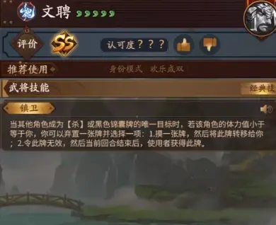 关兴&张苞,加了一个新锁定技【同心】,效果是攻击距离始终为3,关兴张苞这个将存在3个问题:1 牌不够 2 没强命 3卡距离。这一次更新是完美解决了卡距离的问题可以说是没能改变其地位的一个加强,并且说加强方式是单独开了一个技能——完美的绕开了赵襄,为此估计还是没人愿意补票的将。文聘,蛋拐服4V4和统帅里才有发挥的冷门保核,这次加强是把原来【镇卫】发动条件改为了“小于等于”,然后加了一点血上限。后者的加强似乎更有价值些。但依旧是个天牢,原因在于:1 文聘的技能只能挡“牌”,而现在游戏环境的“魔法伤害”不要太多呀 2 文聘回合内能力约等于大白板,没法对别人造成威胁的将完全没用。而且现如今就有兼具顶级保核,回合内有强度,便宜的将——神诸葛。