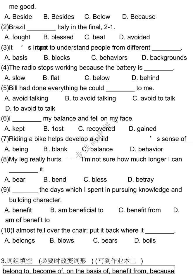 单词的积累,对于学生们的考试而言,其重要性是不言而喻的,好多学生成绩不好的原因出在词汇量上,同学们在平常记单词的时候一定要认真,只有真正记牢了,才能在考试的时候发挥作用。