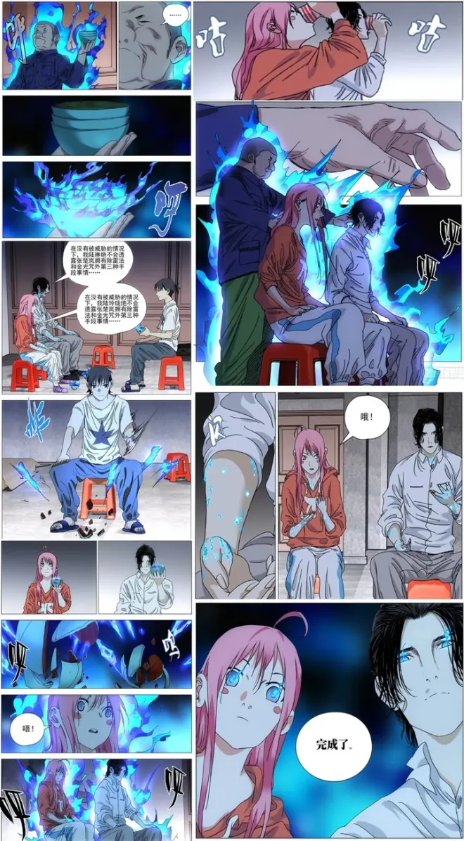但我觉得应该也只有曲彤能看到,作者让我们读者看到就是给我们开的上帝视觉,目的就是告诉我们他们是被蓝手控制的人,漫画里其他人应该看不到上根器眼中的蓝光。