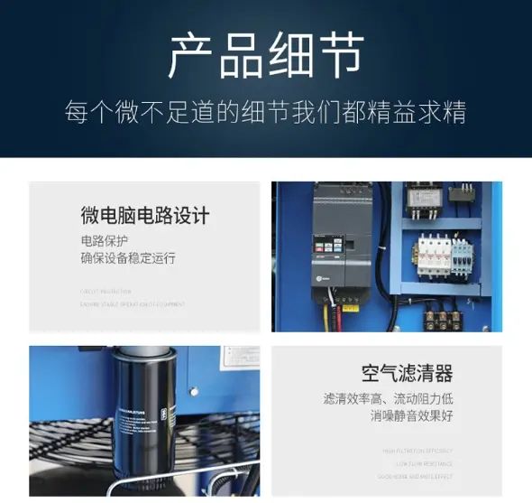 5、变频系统大多数工况是低于额定转速下工作的,主机机械震动小、噪音低、磨损下降,延长维护及使用寿命,适用于更多场合使用,如果风机也一起采用变频驱动,更显降低空压机运行时的噪音。