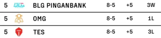 8胜队伍:WBG,BLG,OMG,TES,TT,
