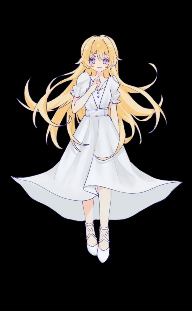 形象:金色长发 亮紫色瞳孔 有点皱的米灰色连衣裙