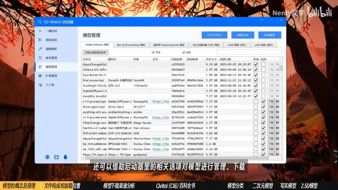 3.用的是 秋葉aaaki 的整合包,启动器里有相关选项对模型进行管理、下载