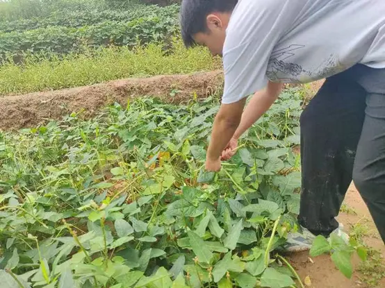 接下来,我们在附近一位村民的带领下,来到了他所种植的一片菜地。历经村子的拆迁与发展,种地早已不是村民们赖以生存的唯一方式,但仍有许多村民没有荒废自家的菜地,依然勤勤恳恳的种植,按他们的话说就是“还是自家种出来的菜吃着健康!”。在村民的盛情邀请下,我们也拿上工具,体验了一把劳动的乐趣,带我们来的叔叔更是大方的将摘下来的菜送于我们,又在自家为我们准备了一顿丰富的午饭。这让我们不由得感叹,纵使时过境迁,村子里的低矮平房变成了高楼大厦,村民们淳朴,热情好客之风依旧长存。