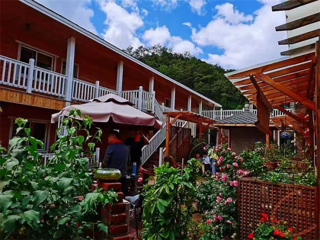 饭庄周边青山环绕、河宽水清、山势险峻、步步皆景、环境自然、空气清新、四季如画,院内就可观赏山水秀色,定会让您在休闲之余领略别样的农家风情。
