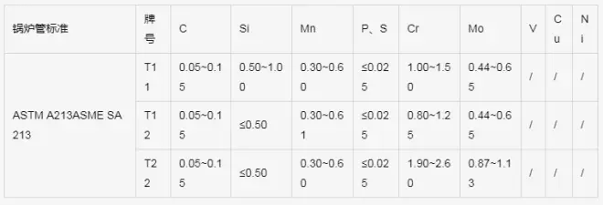 SA213高压锅炉管牌号:A213T11、A213T12、A213T22等。
