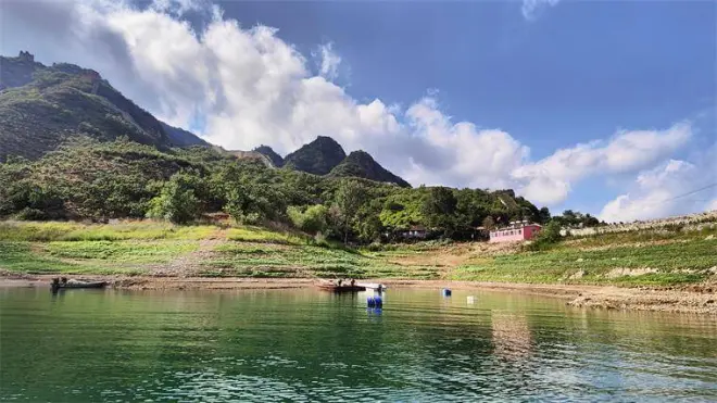 唐山迁西潘家口水库翠花农家院,门前有湖泊,小院后墙就是长城!