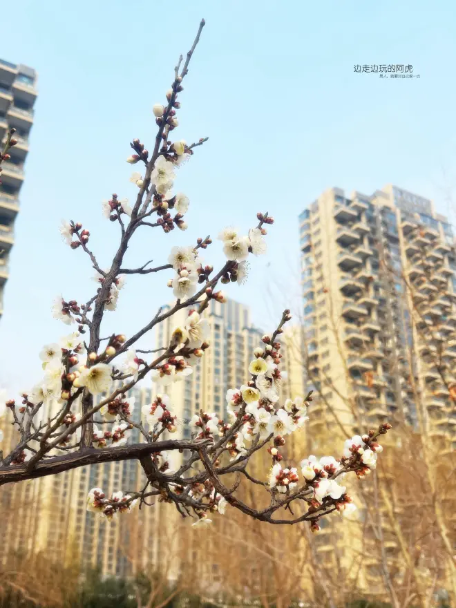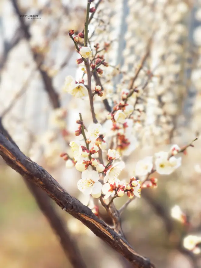 梅花花期将持续到3月中旬,很多春花植物的枝干上都挂满花苞,如碧桃、红叶李等,如不遇大幅度降温,天气继续晴好,这些花就会在下星期陆续绽放,朋友们,有时间可以来这里驻足留念拍照打卡了!