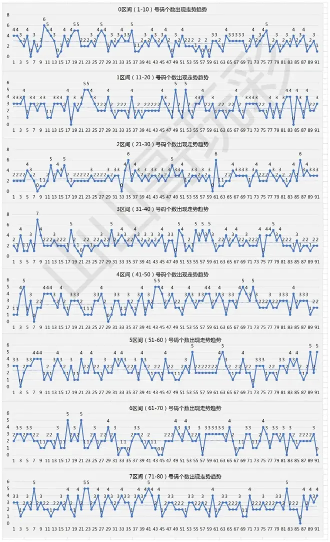 最近一段时间8分区的出现号码个数曲线趋势图如下: