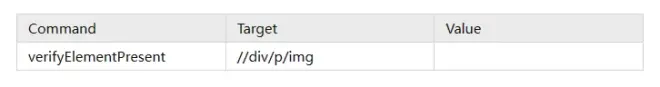 这个命令验证被<img>HTML tag标识的图片在页面上是否存在。第一个参数是定位器,用于告诉Selenese命令怎样找到UI元素。