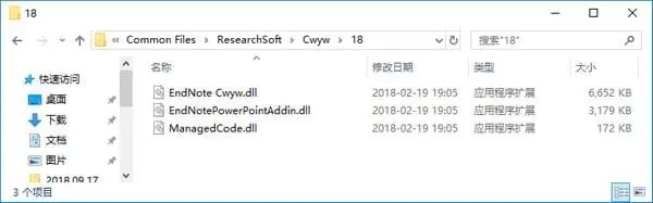 复制ResearchSoft 32Bit/64Bit文件夹下的三个文件到C:\Program Files\Common Files\ResearchSoft\Cwyw\18\替换原来的文件,必要时可以备份如果是64位系统32位的Office,目录可能在C:\Program Files(x86)\Common Files\ResearchSoft\Cwyw\18\