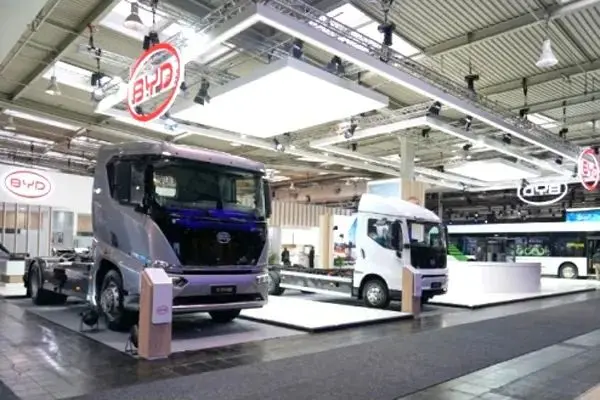 比亚迪于2022年9月9日携全新一代纯电动卡车家族亮相德国汉诺威国际交通运输博览会,展出了应用于城市物流的7.5吨载货车底盘、城市清洁环卫19吨专用底盘,均搭载其自主研发的磷酸铁锂电池和集成驱动技术。尤其令人关注的是,全新刀片电池大巴底盘技术平台发布,预示着高性能刀片电池全面进入商用车的时代即将到来。