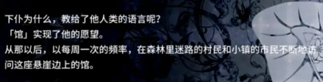 这个突然闯进来生物,似乎叫“野兽”,全身漆黑,而这个野兽成为了馆的新主人
