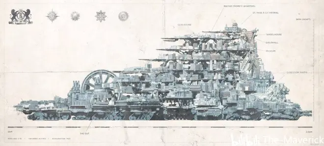 图1为本人作品,灵感来自电影《掠食城市》的伦敦城(图2),加了一点伦敦的特色,并且整体材质由金属改成混凝土(画里有裂纹和黑斑的地方都是混凝土)。 至于下面那三小只,是我设计的“亡语”,它们在伦敦城主体严重受损时自动组装并运送至第一层,沿闸门开出后启动主城自毁程序。这三小只就在伦敦城主体表面,都有裸露的编号,变形组装的时候去掉混凝土结构。 再说武器系统。 闸门前面的两个鱼叉(Alpha,Beta)无疑是最显眼的,原作中鱼叉是在甲板上,类似于高打低打飞舞,我的设计里面给他改成了两个大型鱼叉,一击毙命的那种,感觉我可能没说太明白,大家可以去看up单身的toothless搬运的标题为“北部战线”的视频(其中一句空耳:爷的哈哈哈,爷的感悟),鱼叉具体原理和该视频中双管瓦良号的坦叉原理一致。 至于甲板上的那个玩意儿,你们能想象那是某大和的三联装460吗?这城市实在太大了,460就和一个小机炮一样😂😂😂。 一层内部的炮有三种,一种是正面的380mm舰炮(单管),还有侧面的203mm榴弹炮(立体效果的那个)和三式舰炮。 甲板上侧面的三种炮:前面五个是和原作类似的300mm铳炮,最后那个是多拉+小雷达,倒数第二个依旧是我们熟悉的460mm舰炮。 建筑内所有朝前的炮都是380mm舰炮,三层向后的是203mm舰炮,三层侧面是三式舰炮,一共就四个,其他地方是玻璃(这么大一个城市再怎么着也得有居民区)。 二层顶楼的那六座炮只有两种:双联装380mm舰炮和瞎搞的500mm榴弹炮,顶层甲班仍然有多拉助阵。 至于最大的那俩炮,我没法准确说出口径,毕竟是半个军盲😭,不过我感觉应该是一门1200mm左右,一门1600mm左右,1600的炮弹就和老G古斯塔夫的那个一样设计就行了。 既然是城市,那肯定得有功能区。 先说说一层的分区。 左下角肉眼可见的铁栅栏窗户是监狱,监狱下部有一行小字:prison,no entering(忘了咋说了就这样吧,不过我不是英语飞舞,成绩在班里还可以,上面这句话要是有什么语法错误欢迎各位大佬在评论区指点)。 监狱右边的地方很显然完全没有破损痕迹,我的画风是混凝土有破损,金属只有划痕。所以不难看出那里是一个装甲区,至于03的编号和奇怪的边框线详见三小只的03号,这俩是一个东西,而且这个东西只在左边有,右边的这个位置是贫民窟。 甲板下面两侧有一堆203和三式的地方是两个武器区,打小型步战车用的,正面应该是2*8的火炮,16门380齐射的威力足以击毁任何一个超重坦了包括图纸车(运气好的话能杀驱逐舰?)。 GBR·LONDON的位置也是贫民窟,那块没有窗户,但是城市右侧贫民窟是有窗户的。中间那一整块玻璃是工厂,透过玻璃可以明显看到天车和钢管(03的钻头也是在这生产的) 再说说上层区域。 二层的02是一个钢铁银行,组装完成之后是一个超重型突击炮。02右侧的三个建筑是别墅,最有钱的人住在那。三层除去三式以外的房间都是给普通市民居住的。 顶层原作设计是穹顶,我改成更具英国特色的大本钟了,但是大本钟后半截依旧放了穹顶和原作的美杜莎量子武器,不同的是建筑后面还有一个导弹,而且量子武器改为了可以短时间瘫痪对手并对电力战车造成高额伤害的磁爆武器,并且教堂可以变形成01。 再说能源。 既然有工厂了,底盘安几个石油钻机很合理吧,大城市烧柴油很合理吧(实在不行咱里面还有核反应堆啊),美中不足是发动机太大了只能外露,最后面那个上下火焰涂装的就是,上面还有栏杆也不知道人走上去会怎样🤣🤣🤣。 最后详解三小只 01--最大最硬的那个,火力不强(指无论哪种武器打完一发都要装填三个多钟头而且磁爆打蒸汽车就是一点用没有),有大本钟身后教堂组装而成。底下小履带大本钟底下自带的。至于前面的装甲是直接把闸门拆下来塞进去了。 02--对单火力极强,步兵杀手,硬的离谱。前面的行走装置还是闸门,只不过这个闸门是底下那一半,更大更硬。大轮是拆的主履带最小的那些支撑轮,后半截小履带银行底下一直自带。相当于银行前面放装甲,两个380扔掉不要换成一个喷火器再把顶层的多拉运过来,也是个人认为设计最科学的一个坦。 03--对群的神,穿梭自如的钻地者。设计灵感来源于原作老夫妇的蜈蚣战车。侧面装有大量203舰炮和三式舰炮,正面是一个巨大的精钢钻头,可以保证他在地下穿梭。不用担心空袭,他每一节车体上都有并排的三个四号防空机炮!如同柏林防空塔一般的火力使得飞机难以近身(他一个坦就是整个伦敦城的所有防空火力)。