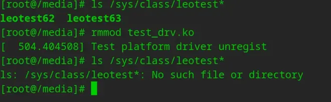 发现class得到了创建,同时在/dev目录下也出现了leotest63的设备,加载第二个platform_device后,系统中创建了第二个leotest设备