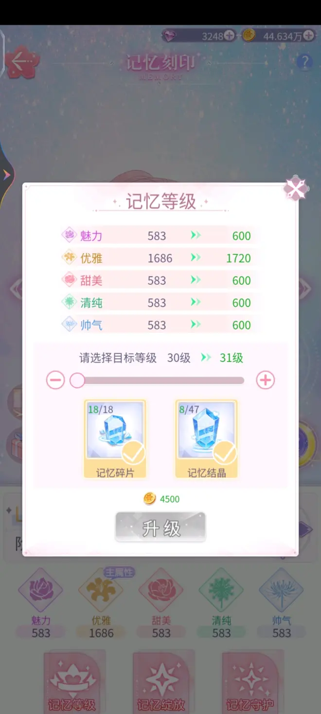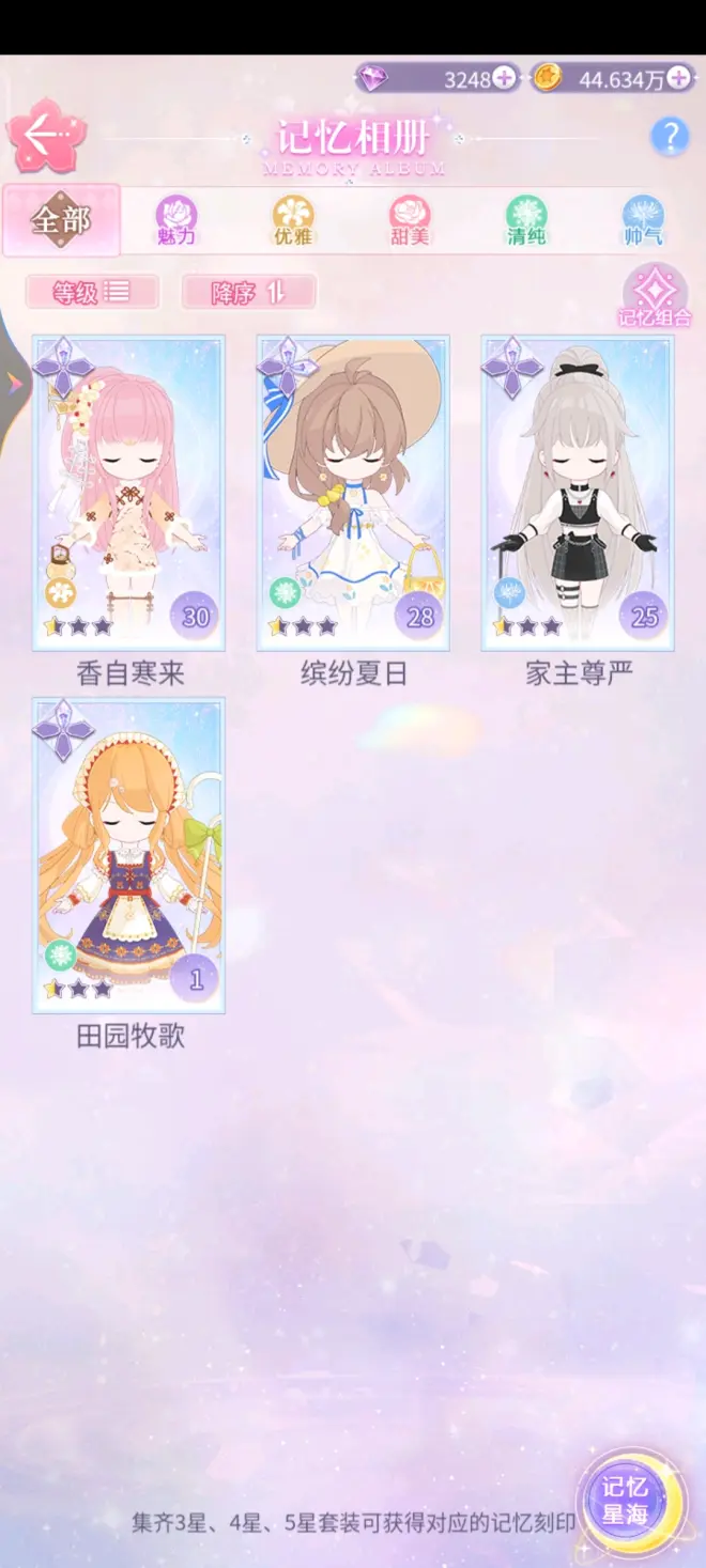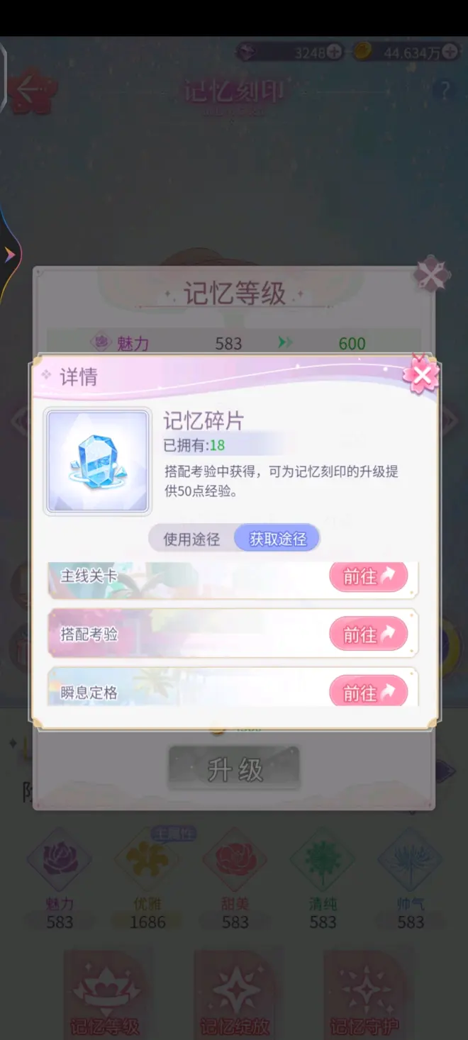 从【家】-【记忆相册】进入,养成如下: 【记忆等级】