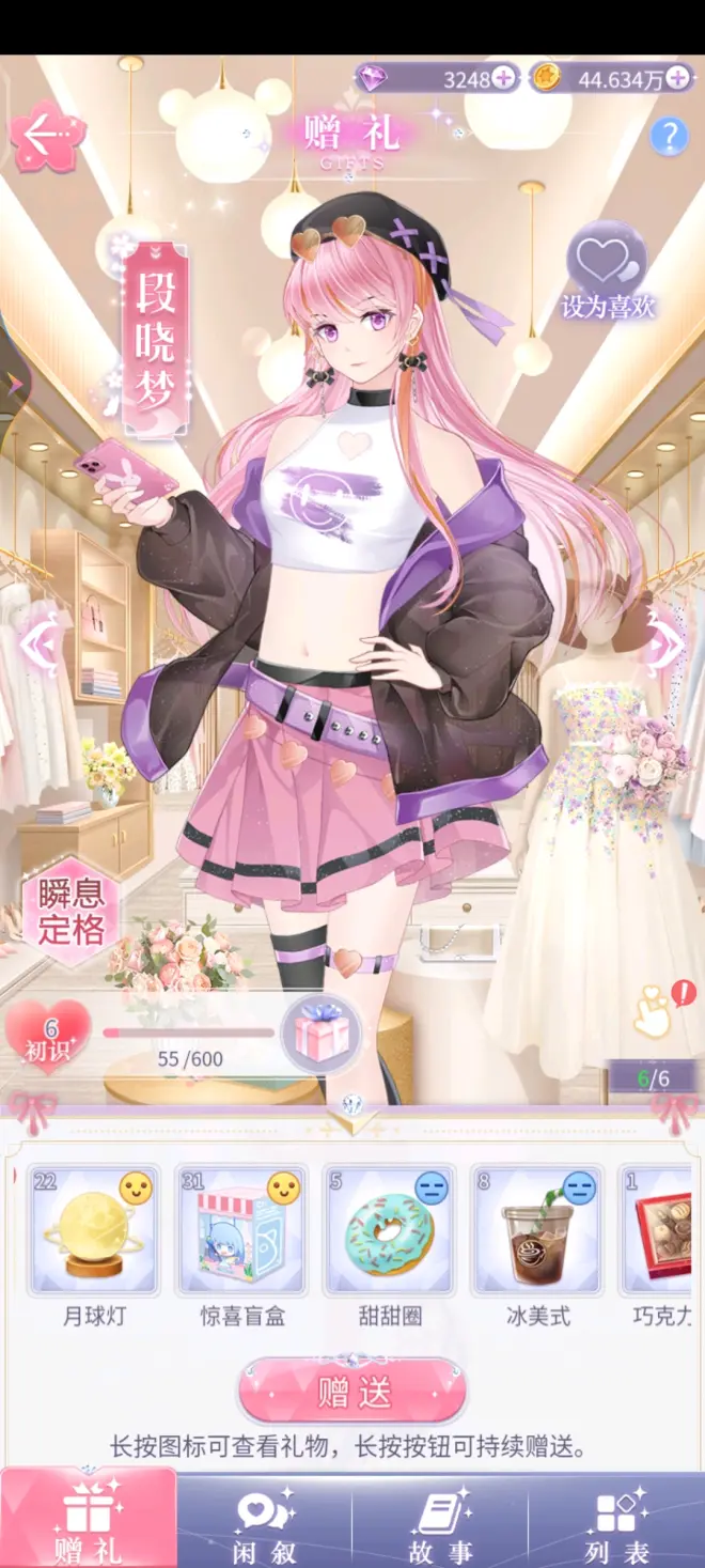 送礼送到3级开启【瞬息定格】,关卡掉落的是他们最喜欢的礼物,当然也可以像我,用多的礼物试探喜好