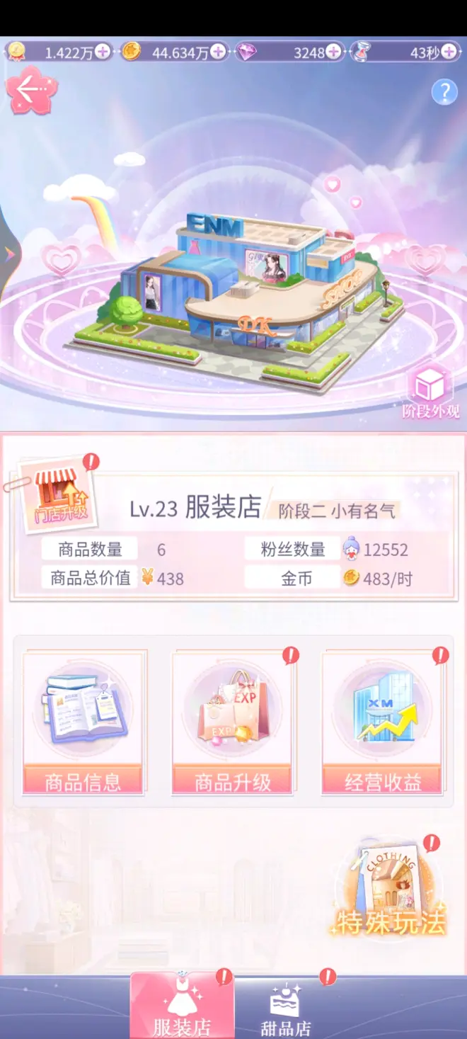 但是呢,具体什么点把我留在这里痛并快乐着呢,就慢慢听我一吐为快吧。 【剧情简介】 我学成回家,发现爸妈出去远游,店铺留给我管理,而后实地走访发现了一群能力出众但各有致命缺点的小伙伴:比如嘴毒的服装店店长(角色互换实际感受+魔鬼职业训练),追求极致完美到窒息的甜品店店长(剧情卡到以追求完整制作时间为由带店长体验其他甜品店是什么样的,不知道是怎么成功的)……总之足够温馨。 升战力