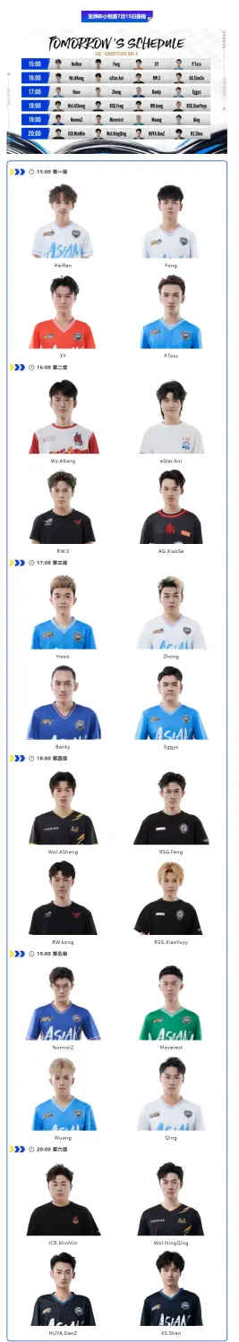 以上就是今日赛程与昨日赛果啦~今日比赛即将打响,究竟谁能率先突围晋级亚洲杯赛区淘汰赛?今日15:00,S酱在直播间等待大家的到来!