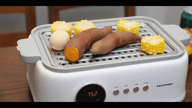 蓝宝水箱加的是800ML的水,大概15分钟内红薯、花卷、鸡蛋、玉米都熟了,蒸锅的水差不多已经使用四分之三,也就是消耗了大约600ML的用水量,最难熟的红薯也在短时间内也已经熟透,打开看能看到蒸出来的红薯含汁水非常的丰富。口感软糯,这外面的营养小吃店的口感甚至更好。