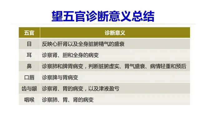 同学们,以上是望五官的全部内容。本节课就讲到这里。