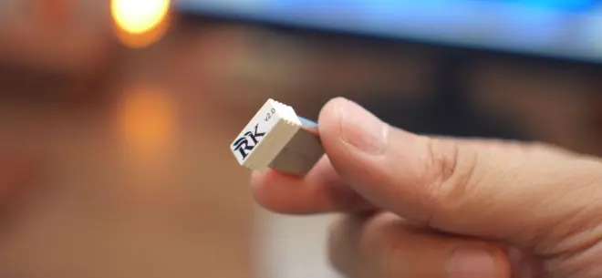 接收器防在了键盘的底部,接收器上印刷有RK的标识,对于RK标识我甚至觉得它有点巴洛克的风格。