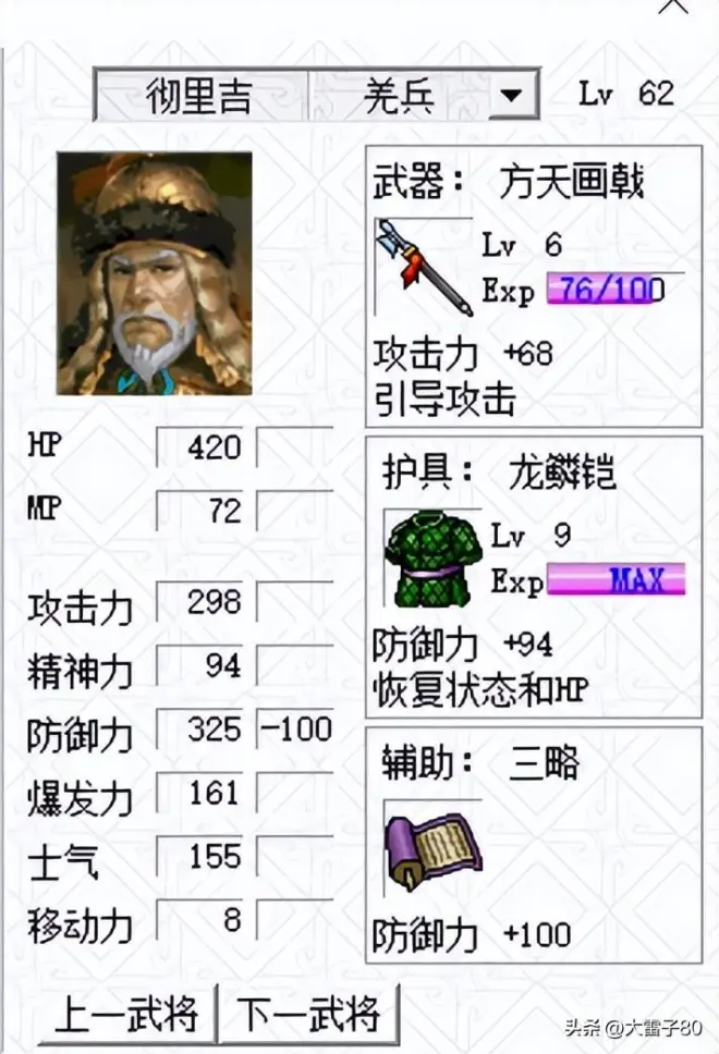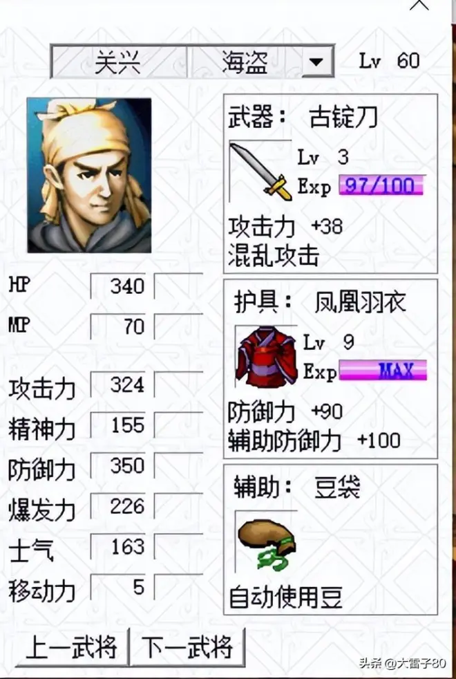 关于三国志刘备传的各职业人物武器护具道具搭配(关兴、张苞、彻里吉、孟获)