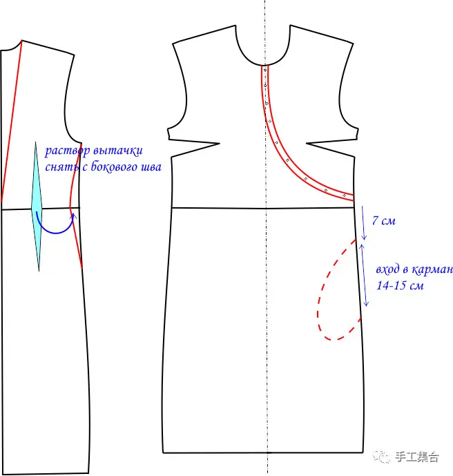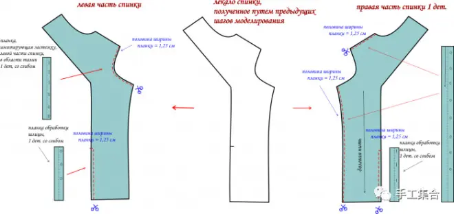 4步建模。让我们勾勒出背面的切口。并解决背部的腰部褶裥,从侧缝中去除。只是重新格式化它。见图纸。