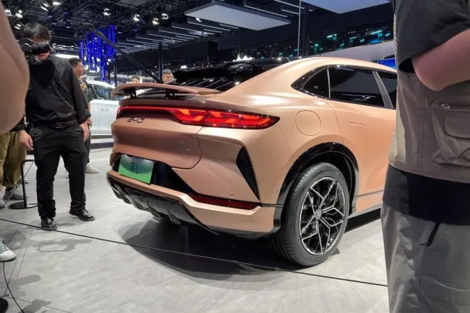 车尾部分,比亚迪宋L采用了贯穿式的尾灯设计,内部LED光源融入了3D立体结构,如果上市的时候能够加入自定义灯光动态,那颜值直接拉满,点亮后辨识度非常不错。作为年轻用户非常喜欢的设计之一,比亚迪宋L还搭载了自适应电动尾翼,这妥妥的赛道风直接将车辆的颜值拉满。