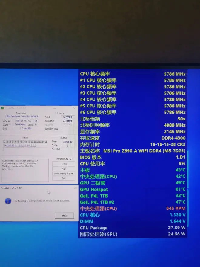 平台微星z690-a bios 版本d0 (林大测试版) win10 22h2 雅俊ea 360水冷 内存散热 追风者m25 高风压扇 附一张卖家的发货图