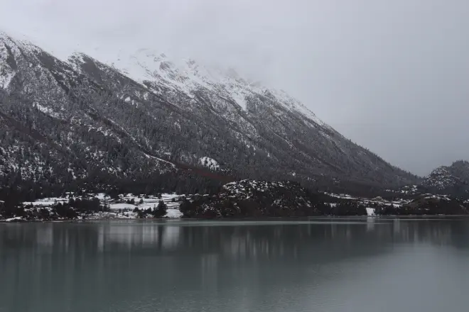 然乌湖是今日的惊喜,宛若仙境。湖水清澈、山间飞雪,意境独特,景色绝美。