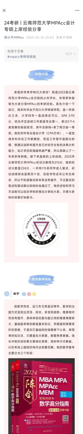 24考研️ | 云南师范大学MPAcc会计专硕上岸经验分享的评论 (共