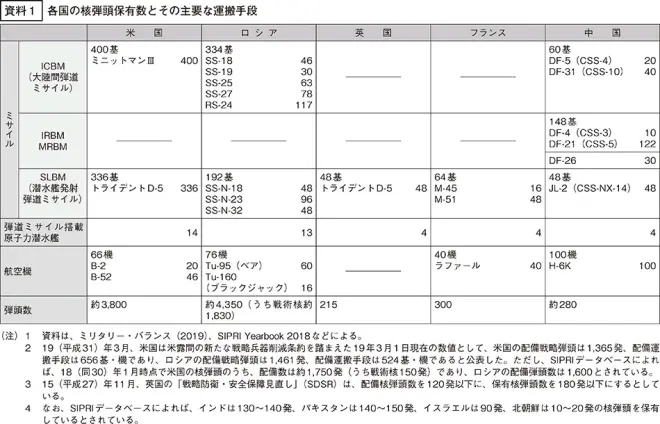 按照美国在冷战中的计算,给苏联毁灭性打击的底线是合计4亿吨TNT当量的约500~2000个核弹头直接命中苏联境内预定目标(弹头数不宜过少。单个巨大核炸弹不但难以投送而且破坏效率不及较低当量的多个弹头)。为减少被先发制人时的损失,美国的核装备载具数量不宜低于200~250。这些结论对中国核武库也是适用的,估计中国现有核装备载具数不低于320。