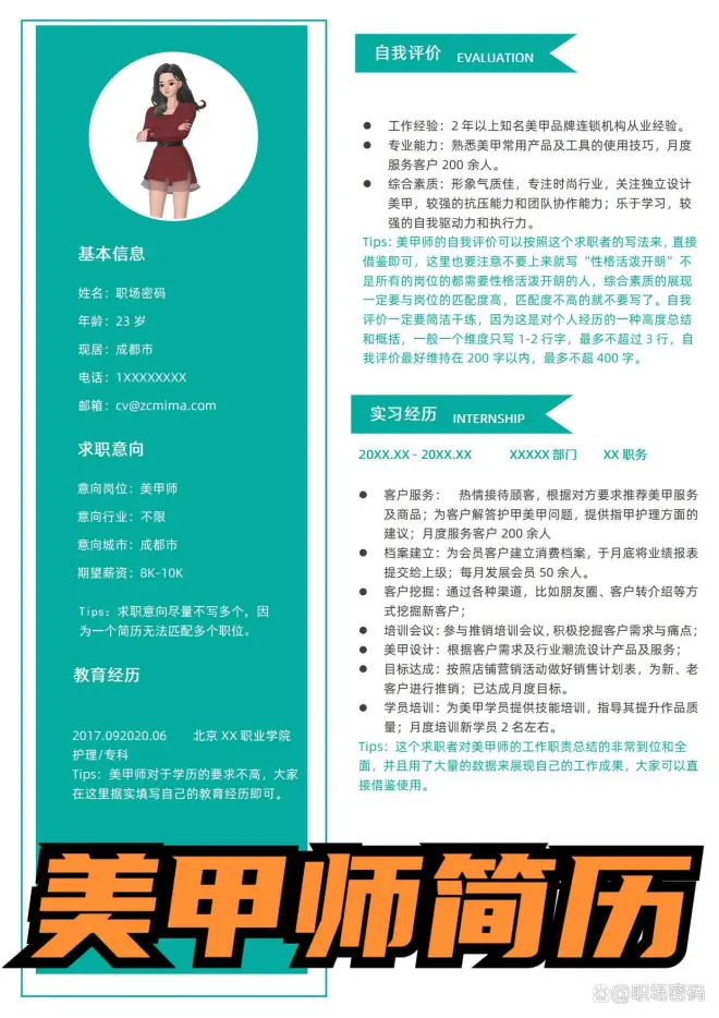 美甲师简历模板优质简历范文免费下载