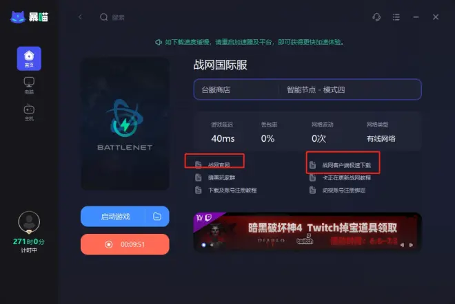 当然,暴雪战网客户端打开登录是比较慢的,或者是打开后提示无法连接网络的问题,使用暴喵加速器加速一下战网可以解决战网客户端无法正常登录和打开的问题,需要的玩家可以下载使用看看。