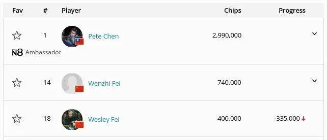 中国台湾玩家Pete Chen以CL的身份晋级Day2,另外还有两名中国玩家Fei Wenzhi 和 Wesley共同晋级,我们可以期待Day2的赛况了。