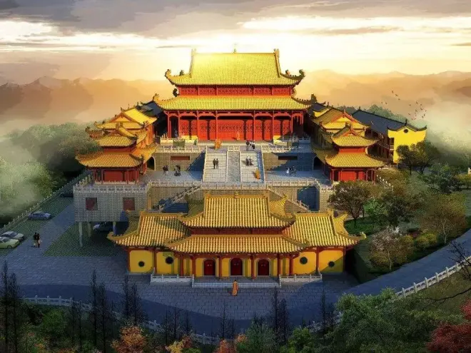旃檀林在九华街上有两个门,西门正对的是大愿宝殿,东门正对是大悲宝殿。每个门都有正门和小门,正门在佛教重要节日会打开,平时从旁边小门进入。