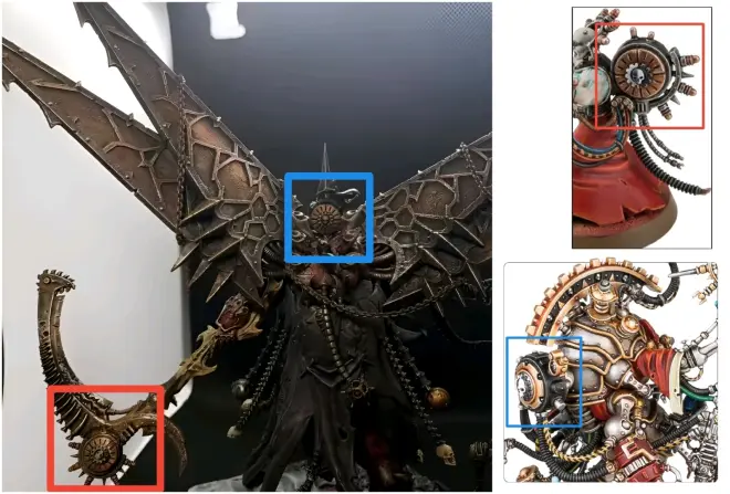 本次改造较为奢侈,成本高昂,需要用到恶魔原体莫塔里安、大贤者考尔和地狱飞龙三盒模型,以及重锤魔、机械教电僧和机械主教部分零件。且改造难度较高,普通玩家谨慎尝试。