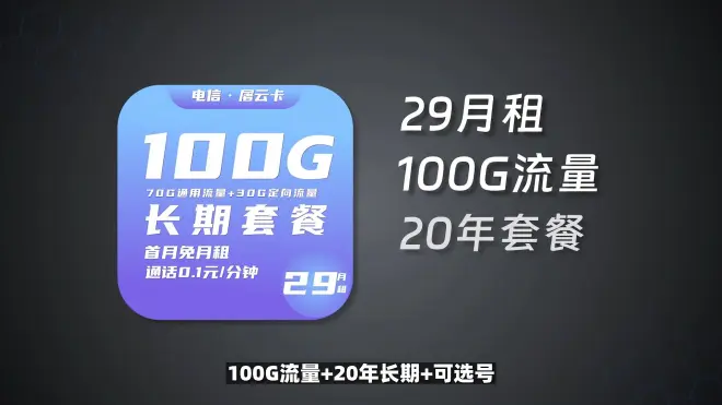 » 29元长期、百G高速流量、可选号,一个不能少!「流量卡研究所」